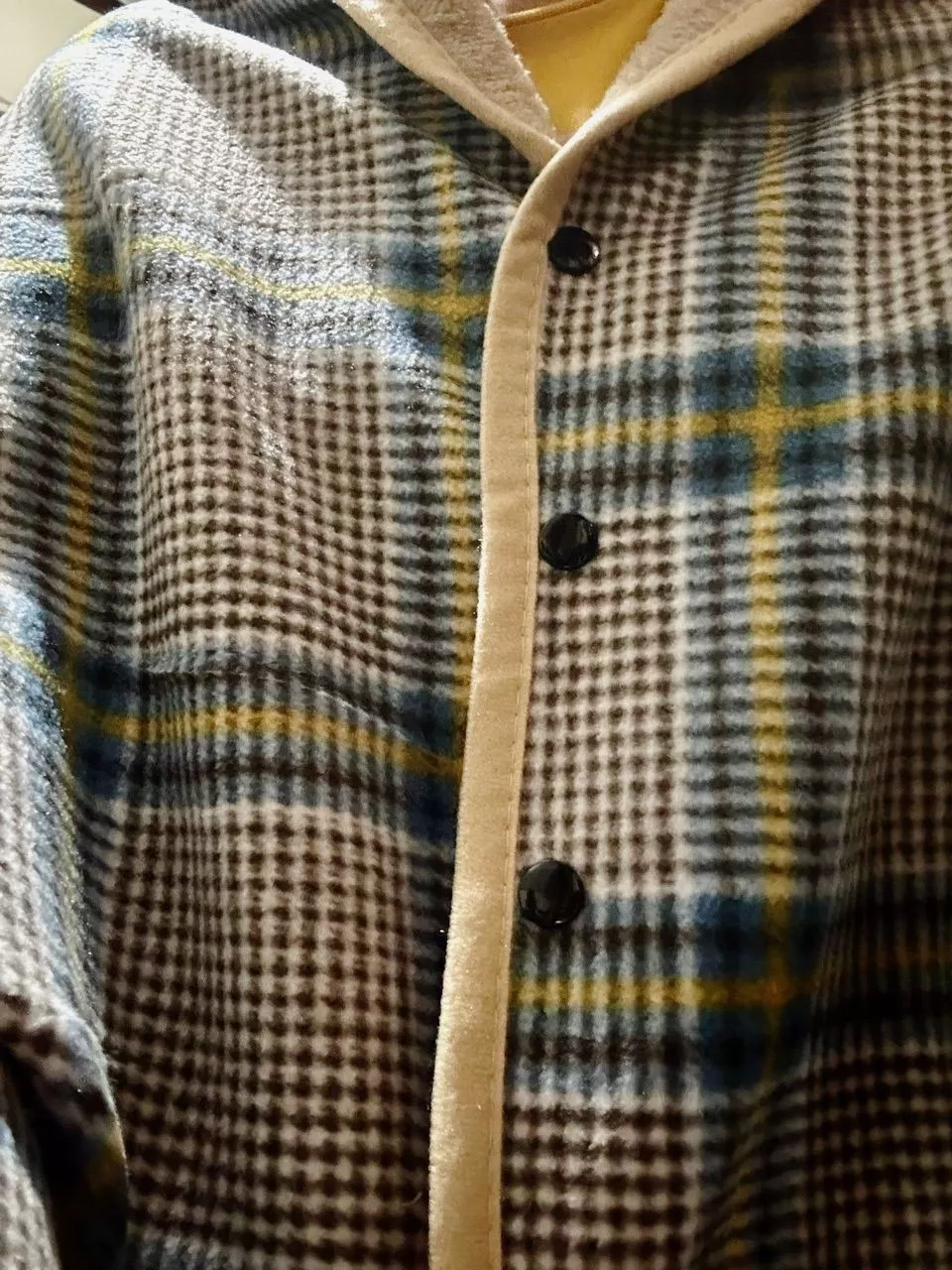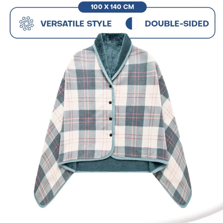 Transformasi instan dari selimut menjadi outerwear stylish dengan kancing pengaman, memberikan kehangatan praktis tanpa membatasi gerak.