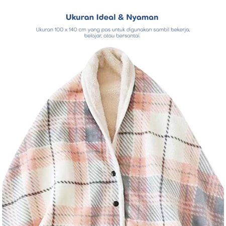 Bisa dipakai sebagai selimut atau dikenakan seperti jaket untuk gaya santai di rumah atau kantor.